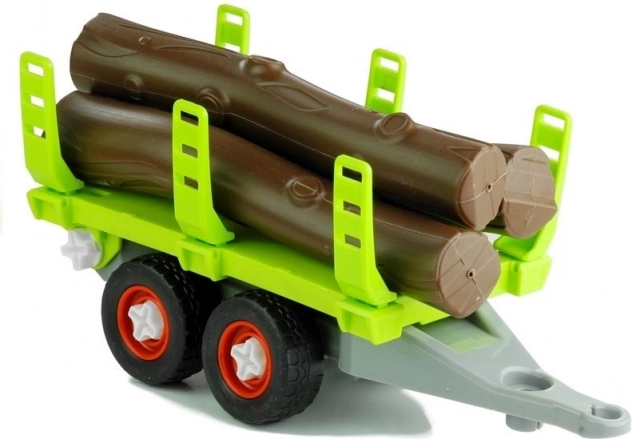Igračka sadrži traktor, prikolicu, drvene balvane i iskopnu ruku, sve izrađeno od izdržljive plastike.