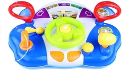 Ova interaktivna igračka nudi mnoštvo raznobojnih elemenata i zvukova koji pridonose razvoju vještina. Idealna je za prepoznavanje oblika i boja, te pruža dvije razine glasnoće za prilagodbu različitim okruženjima i dobama dana. Ergonomski volan se lako drži u malim rukama i sadrži 7 vrsta zvukova, osvijetljene indikatore i rotirajuća zrcala. Djeca mogu ključićem manipulisati u prekidaču i tipkom aktivirati zvuk motora. Pokret volana također pomiče autić po stazi.