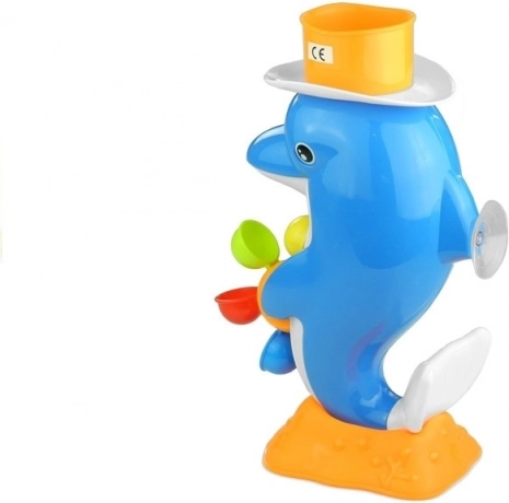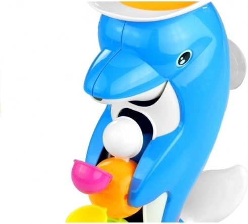 Svako kupanje pretvorite u zabavnu igru tako što ćete napuniti vodu u kapicu na delfinovoj glavi. Potom voda prolazi kroz nekoliko raznobojnih kotačića koji se zavrte. Igračka je opremljena usisnom čašicom, što omogućava njeno jednostavno pričvršćivanje na zid ili kadu, čime se osigurava njena stabilnost tijekom igre.