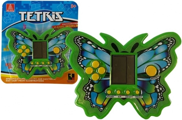 Elektronička igra Tetris u obliku leptira donosi vječnu zabavu u kompaktnom i izdržljivom izdanju. Rotirajte i slažite padajuće dijelove tako da ispunite cijele redove i osvojite što više bodova. Sa svakim uklonjenim redom povećava se brzina i igra postaje napetija.