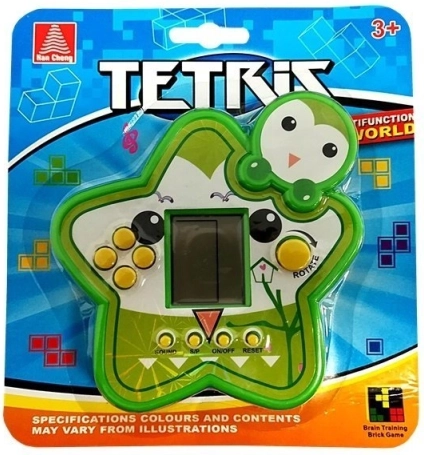 Igra s elektroničkom zelenom konstrukcijom vrlo je lagana i kompaktna, što je čini idealnom džepnom varijantom koju možete ponijeti svuda sa sobom. Sastoji se od zaslona i žutih tipki koje upravljaju funkcijama igre. Možete uključiti i isključiti igru, isključiti zvukove ili resetirati igralnu ploču kako biste ponovno mogli slagati blokove. Ostale tipke služe za navigaciju tijekom igre i okretanje blokova. Ova džepna, zelena verzija elektroničke igre uljepšat će vrijeme i djeci i odraslima. Odlično pristaje za odmor između sati, u autobusu ili kod kuće tijekom opuštanja.