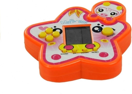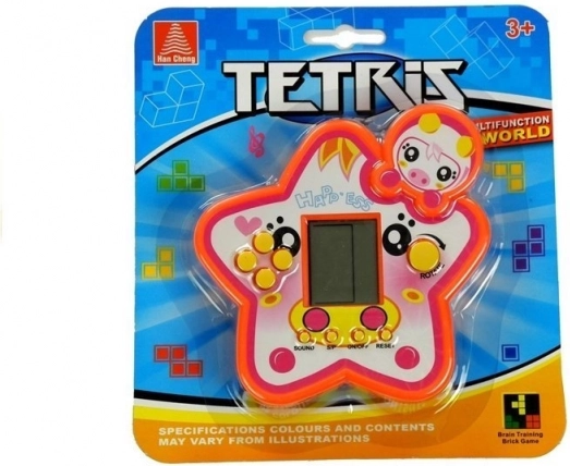 Elektronička igra u narančastom kućištu vrlo je lagana, a zahvaljujući kompaktnim dimenzijama idealna je za prenošenje. Sadrži zaslon i žute tipke za upravljanje funkcijama igre. Tipke omogućuju pokretanje i gašenje igre, stišavanje zvuka i resetiranje igrališta za novi početak. Dodatne tipke služe za navigaciju tijekom igre i okretanje blokova. Džepna verzija elektroničke igre idealan je suputnik za slobodne trenutke, bilo da ste u autobusu, kod kuće ili tijekom pauze između obaveza.