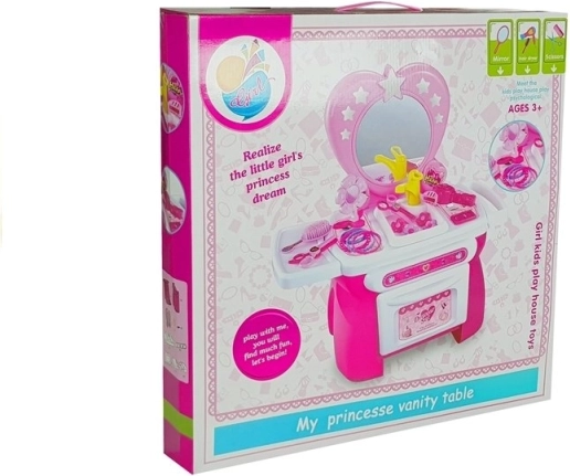 Uz ovaj toaletni stolić svaka djevojčica može se osjećati kao u bajci. Bogati dodaci i pribor potiču maštu i pružaju sate zabave.