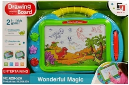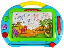 Ova velika magnetska ploča za crtanje omogućuje djeci da crtaju i pišu iznova i iznova – bez nereda i bez papira. Ispod površine zaslona nalaze se željezne strugotine koje se pri dodiru magnetske olovke slažu u vidljive tragove. Pečati u obliku kružića, šape i cvjetića daju crtežima originalne detalje i pomažu razvijati maštu.