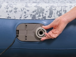 Integrirana pumpa 220–240 V napuhne madrac za 2–3 minute. Upravljanje je intuitivno i brzo, tako da je ležaj spreman bez napora.