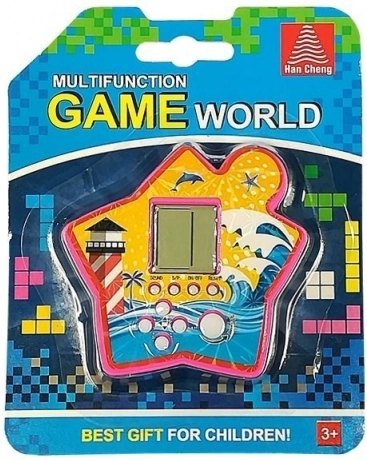 Zabavna džepna igra u obliku zvijezde donosi klasični Tetris u šarenom i laganom izdanju. Zahvaljujući kompaktnim dimenzijama lako je ponesete u školu, autobus ili kući. Upravljačke tipke omogućuju okretanje blokova, pauzu, isključivanje zvuka i reset. Idealno za trening logike i brze reakcije, pogodno za djecu od 3 godine.