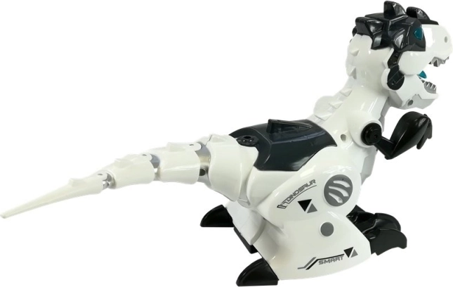 Otkrijte uzbudljiv svijet dinosaura s mehaničkim T-Rexom na daljinsko upravljanje. Dinosaurus ima izrazite svjetleće elemente i proizvodi realistične zvukove koji pojačavaju doživljaj igre. Zahvaljujući robusnoj konstrukciji i modernoj kombinaciji bijele, crne i sive boje djeluje poput pravog futurističkog stvorenja.