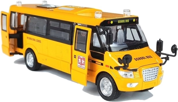 Bočna i stražnja vrata te poklopac motora se otvaraju, prozirni prozori i precizne sitnice (retrovizori, ratkape, natpisi) stvaraju autentičan izgled školskog autobusa.
