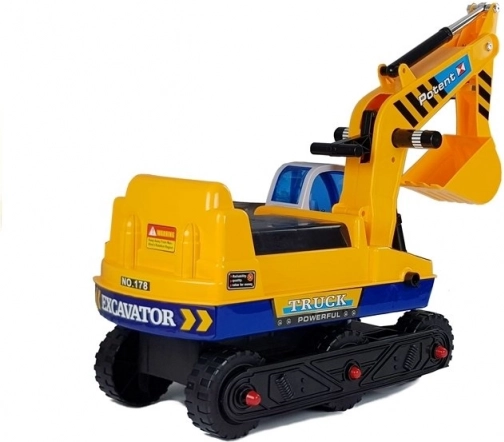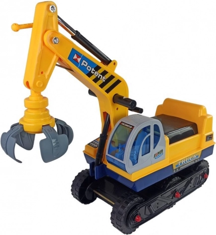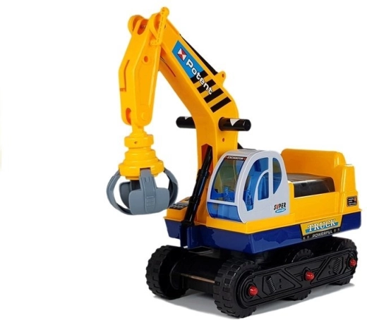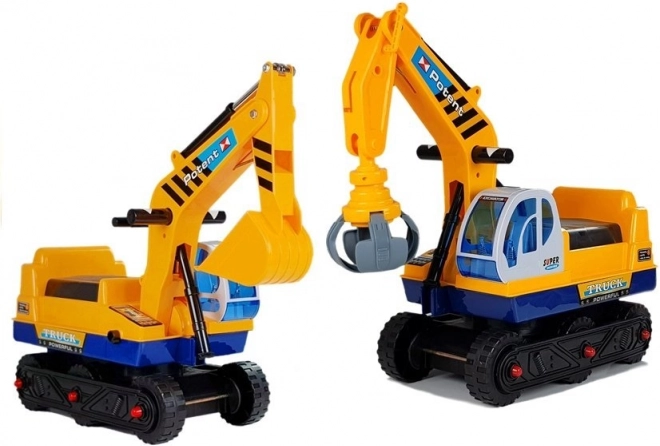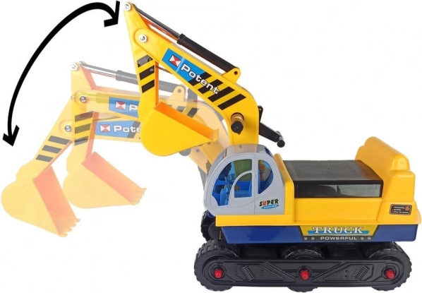 Dječja guralica bager s izmjenjivom žlicom i hvataljkom, pokretnom rukom do 50 cm i stabilnom konstrukcijom. CE, od 3 godine, nosivost 25 kg.