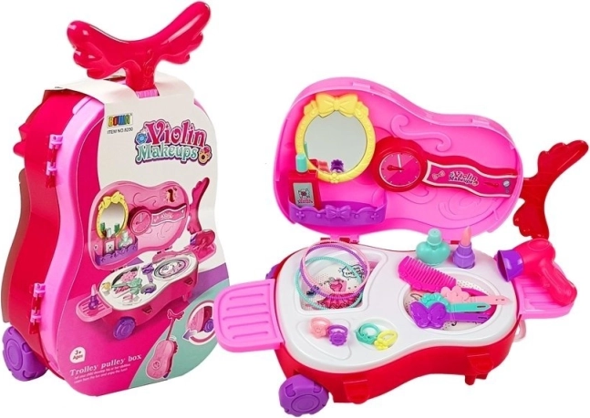 Prijenosni toaletni stolić u ružičastom kuferu u obliku violine nudi djeci mogućnost zabavne brige o svom izgledu. Sadrži razne plastične dodatke koji bude maštu svakog malog vizažista.