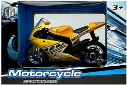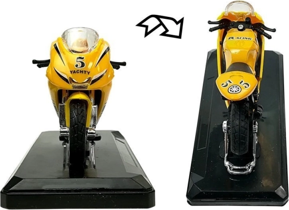 Stilizan model sportskog motocikla u mjerilu 1:18 razveselit će male i velike kolekcionare. Nudi zvučne efekte pritiskom stražnjeg dijela, okretna upravljača, zamajac za vožnju naprijed i odvojivo postolje za izlaganje. Dostupan u 4 boje – žuta, crvena, zelena i plava.