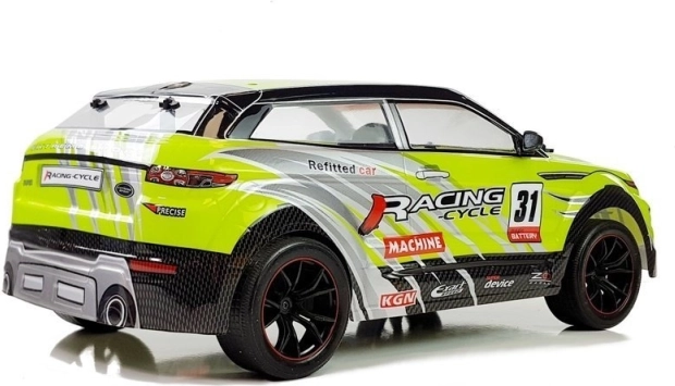 Stilski zeleni RC auto inspiriran trkaćim specijalima donosi puno akcije i na manjem prostoru. Mjerilo 1:10 pojačava realističan izgled, dok upravljač na frekvenciji 2,4 GHz uklanja smetnje i omogućuje vožnju više vozila istovremeno. Izdržljiva karoserija od PVC-a podnosi udarce i niske temperature, a gumene gume brinu o dobroj trakciji na raznim podlogama.