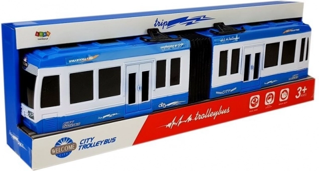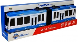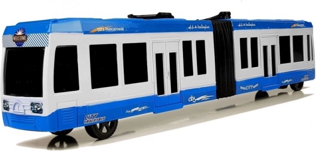 Ovaj detaljno izrađen plavi zglobni autobus izgleda kao pravo gradsko vozilo. Dovoljno ga je povući unatrag i pustiti – zahvaljujući inerciji sam će krenuti naprijed. Robusna izrada, gumirane gume i središnji zglob osiguravaju glatko skretanje te zabavnu i sigurnu vožnju po podu.