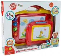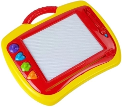 Magnetna olovka i četiri oblika žigova potiču kreativnost. Klizač u trenu briše cijelu sliku.
