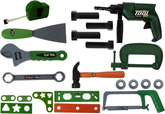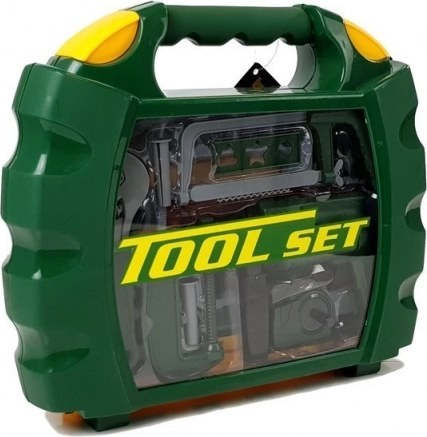 Dječji set alata u zelenom kovčežiću s prozirnim poklopcem razveselit će svakog malog majstora. Sadrži realistične plastične alate i razvija finu motoriku, kreativnost i koncentraciju. Zahvaljujući praktičnom kovčežiću dijete ima sve pregledno na jednom mjestu. Pogodno od 3 godine, s CE certifikatom i u skladu s normom EN 71.