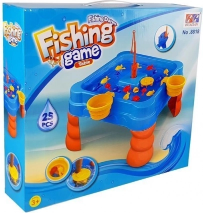 Velika vodena igra pecanja pretvara svako poslijepodne u zabavan ribolov. Napunite plavo–narančasti stolić vodom, ubacite ribice i mehanizmom pokrenite vrtlog kako bi ribice veselo kružile. Dva igrača se potom natječu tko će ih više uloviti štapom. Igra razvija finu motoriku, koordinaciju oko–ruka i koncentraciju.