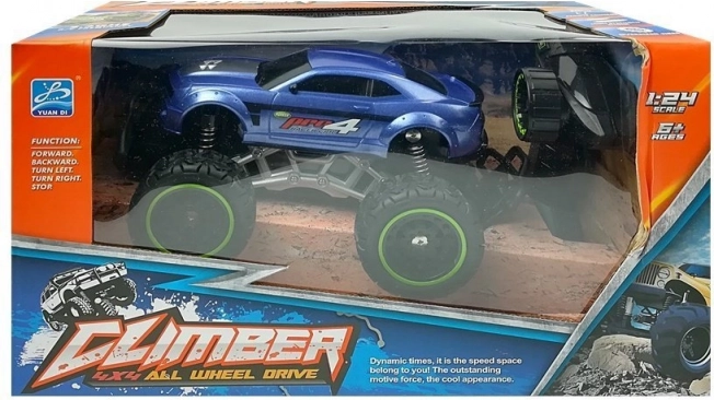 Snažno RC terensko vozilo s pogon na sve kotače (4WD), mekim gumiranim kotačima i jakim amortizerima koje se lako nosi s asfaltom i neravnim terenima. Zahvaljujući frekvenciji 2,4 GHz možete se utrkivati bez smetnji, a maksimalna brzina iznosi 6,5 km/h. Mjerilo 1:24 pruža realističan izgled i izvrsna vozna svojstva za djecu od 6 godina naviše.