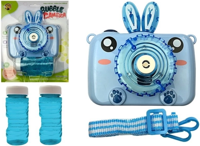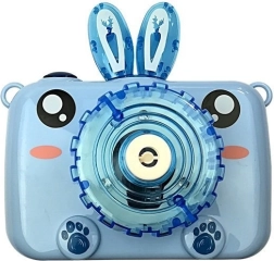 Prekrasan plavi fotoaparat koji stvara sapunaste mjehuriće. Idealan poklon za zabavu po toplom vremenu. Dodatne funkcije fotoaparata uključuju svjetlosne i zvučne efekte. Dovoljno je uliti tekućinu, pritisnuti gumb i vaše će dijete vidjeti kako iz objektiva izlijeće mnoštvo sapunastih mjehurića. Idealan za razne proslave, rođendane ili kao igračka za vaše dijete. U pakiranju se nalazi i remen kako bi se mogao udobno nositi oko vrata poput pravog fotoaparata. Zahvaljujući ušima smještenima na gornjoj strani, fotoaparat podsjeća na zekića.