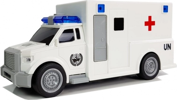 Ova interaktivna hitna pomoć odlična je igračka za djecu koja vole akciju i spasilačke misije. Realistična izrada i funkcionalni detalji pomažu u razvoju mašte i motorike. Pritiskom na gumb na krovu aktiviraju se svjetla i zvukovi, a frikcijski pogon omogućuje vozilu kretanje naprijed bez potrebe za baterijskim pogonom kotača.