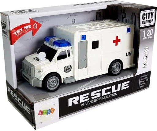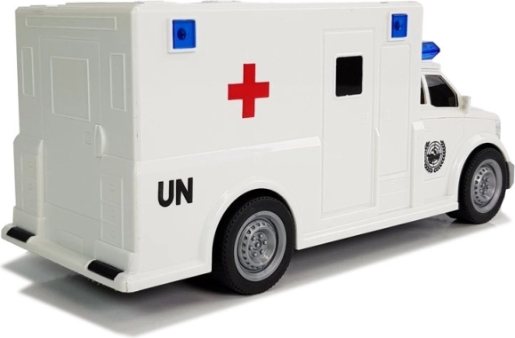 Realistična dječja ambulanta u mjerilu 1:20 sa svjetlosnim i zvučnim efektima te frikcijskim pogonom razveselit će svakog malog spasioca. Ima gumene kotače, lagana je i izdržljiva te se zahvaljujući kompaktnim dimenzijama lako upravlja. U pakiranju su baterije, a tu je i CE certifikacija prema normi EN 71.