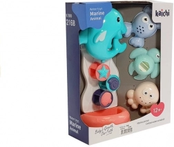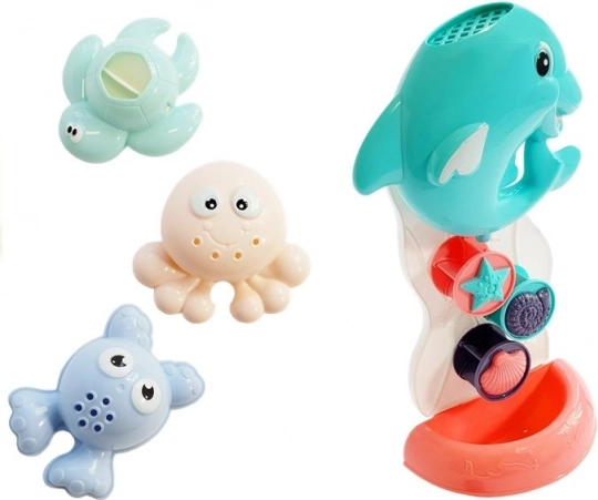 Doživite nezaboravnu kupališnu avanturu s ovom igračkom! Dupin djeluje kao slap koji privlači pažnju djeteta. Dovoljno je uliti vodu odozgo i ona teče prema dolje preko pomičnih kotačića s školjkicama.