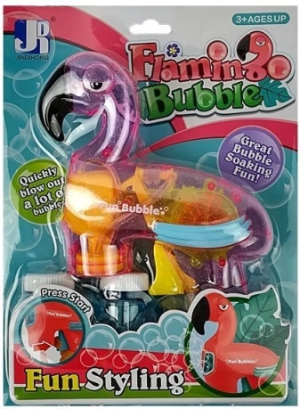 Ovaj zabavni set za proizvodnju mjehurića sastoji se od puške u obliku flaminga i dvije bočice s rezervnim rješenjem. Jednostavno odvrnite poklopac bočice, uklonite zaštitu i zavrnite je u pušku. Dovoljno je pritisnuti okidač i iz puške će početi izlaziti prekrasni, šareni mjehurići.