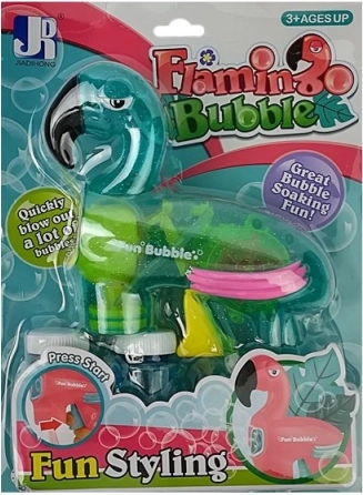 Ovaj pištolj za mjehuriće kombinira jedinstveni dizajn plamenca s praktičnom konstrukcijom koja omogućava brzo stvaranje mjehurića. Lako je upravljiv, čak i za mlađu djecu, zahvaljujući ilustriranim uputama na stražnjoj strani pakiranja.