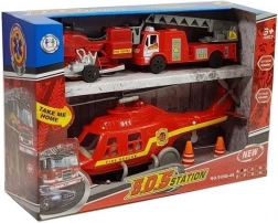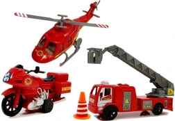 Vatrogasni set vozila s helikopterom, vatrogasnim vozilom i motociklom sa svjetlima i zvukovima