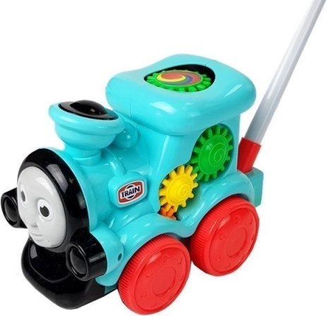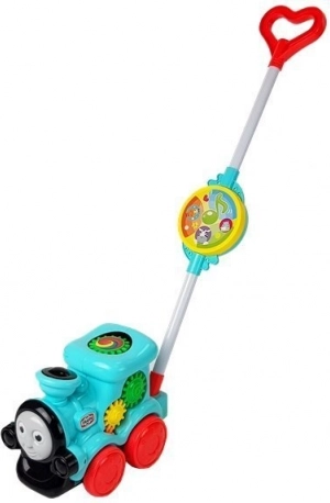 Ovaj šareni guralica-vlakić izvrstan je pratitelj za najmlađe. Zahvaljujući ergonomskoj ručki lako se upravlja i podupire prirodno kretanje djeteta. Tijekom vožnje zviždi i svira melodije, što motivira djecu na daljnje istraživanje i zabavu.