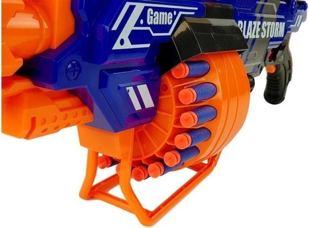 Ovaj dječji blaster spaja atraktivan dizajn sa sigurnom zabavom. Pjenaste strelice i strelice s vakuumskim čepovima izrađene su od certificiranih materijala, tako da djeca mogu bezbrižno uživati u akcijskim igrama. Veliki rotirajući bubanjski spremnik omogućuje brzo punjenje i duge igraće seanse bez stalnog dopunjavanja.
