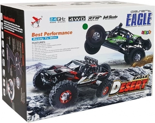 Snažan terenski RC buggy u mjerilu 1:12 s pogonom 4x4, brzinom do 30 km/h i izdržljivom konstrukcijom za vožnju u zahtjevnom terenu. Velike off-road gume sa specijalnim profilom, neovisno ovjes svih kotača i pouzdano 2,4 GHz upravljanje do 100 m osiguravaju izvrsnu stabilnost i zabavu. Pokreće ga 7,4 V 1500 mAh Li-ion akumulator koji pruža do 15 minuta vožnje.