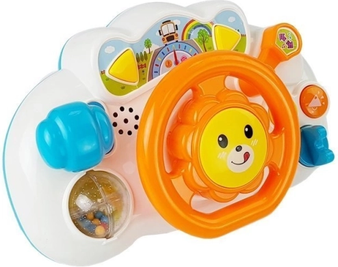 Zabavni interaktivni volan za najmlađe u narančastoj boji donosi svijet svjetiljki, zvukova i glazbe. Zahvaljujući pomičnom tijelu, ručici mjenjača, zrcalu i tipkama s efektima, razvija finu motoriku, osjetilnu percepciju i koordinaciju oko–ruka. Idealan za dom i automobil, siguran za djecu od 18 mjeseci.