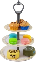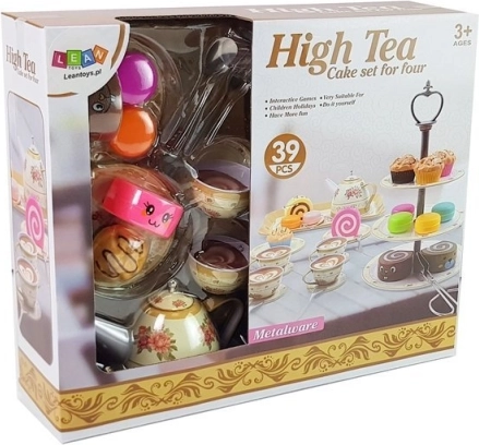 Ovaj prekrasan čajni set u bijelo-krem boji s ružičastim motivom idealan je za djecu koja se vole uživjeti u uloge odraslih. Čajni set potiče razvoj mašte, samostalnog razmišljanja i vještina kroz igru, čime osigurava ne samo zabavu, već i edukativnu vrijednost. Paket sadrži ukupno 39 dijelova – šalice, tanjure, desertne tanjure, čajnik s poklopcem, pladanj, višeslojni stalak za torte, razne slastice poput bábovki, kolača, makarona, kao i žličice, lopaticu za tortu i vilice.