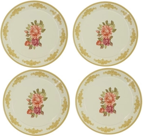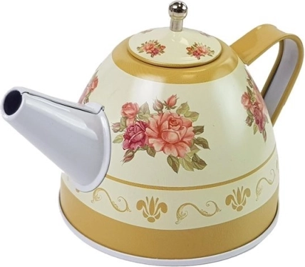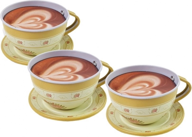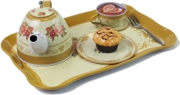 Set uključuje 4 šalice s tanjurićima, 4 desertna tanjura, čajnik, pladanj i višeslojni stalak za torte.