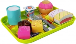 Dio seta je podložak, tanjuri, vilice, čašica jogurta, razne komade torti, šalica i ukusna biskvitna torta. Igra s ovim setom pruža beskonačan broj mogućnosti za zabavnu igru.