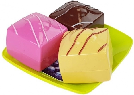 Ovaj veseli i šareni set omogućava djeci oponašanje pripreme i posluživanja ukusnih slastica, čime razvijaju njihovu maštu i motoričke vještine. Žive boje i realističan dizajn pojedinačnih elemenata privući će svako dijete tijekom igre na domaću slastičarnicu.