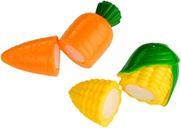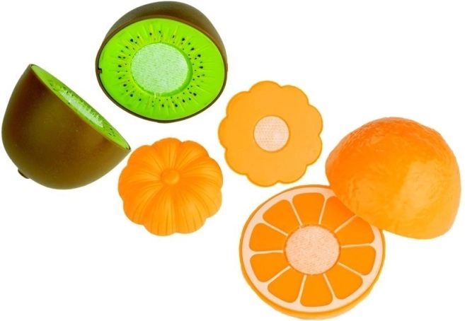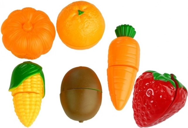 Set sadrži razne vrste plastičnog voća i povrća koje se lako može razdvojiti i spojiti, podržavajući razvoj motoričkih vještina.