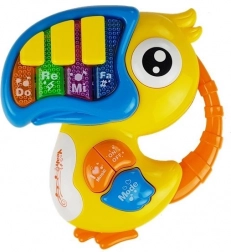 Klavir i gitara u obliku papige i ribice pomažu djeci otkrivati svijet svih osjetila - vidjeti, čuti i dodirnuti. Zahvaljujući raznolikim funkcijama i šarolikom dizajnu, djeca uče prepoznavati nove zvukove, boje i oblike.