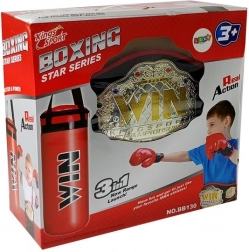 Sadrži vreću, rukavice i šampionski remen za potpuni doživljaj.