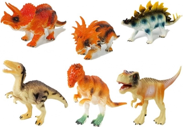 Set figurica dinosaura 6 komada idealan je za dječju maštu i učenje. Sadrži razne vrste kao što su Tyrannosaurus, Stegosaurus i Triceratops. Igračke su izrađene od sigurne gume, lagane su i lako se drže u malim ručicama.