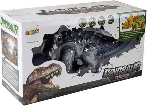 Elektronički dinosaurus Triceratops realistično je izvedena igračka koja podsjeća na prapovijesno doba. Ovaj dinosaurus hoda, ispušta zvukove i svijetli, što ga čini fascinantnom igračkom za sve male paleontologe. Igračka je izrađena od izdržljive plastike sive boje, koja se približava prirodnom izgledu pravih dinosaura.