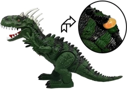 Interaktivni zeleni dinosaurus na baterije razveselit će male ljubitelje prapovijesti. Hoda naprijed, ispušta realistične zvukove rike, ima svjetlosne efekte u „ljuskama“ na glavi, polaže jaja i u prsima skriva projektor sa slikom pravog tiranosaura. Sjajna igračka koja razvija maštu i donosi sate zabave.