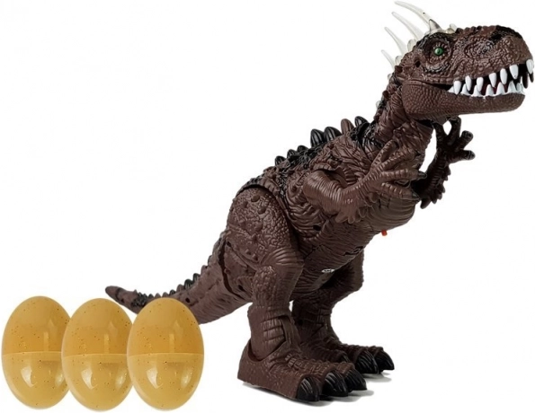U pakiranju su 3 jaja. Dovoljno ih je umetnuti u otvor na leđima i tijekom hodanja dinosaurus ih postupno snese – izvrstan efekt koji djeca obožavaju.