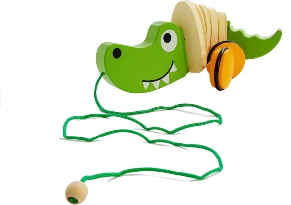 Drveni krokodil na kotačićima klasična je igračka na povlačenje koja potiče prirodan razvoj hoda, ravnoteže te fine i grube motorike. Zeleni krokodil s prijateljskim osmijehom pri povlačenju se karakteristično njiše, pa djecu zabavlja i motivira na nove korake.