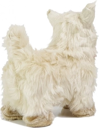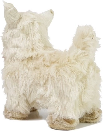 Ovaj interaktivni psić vjerno podsjeća na pravog Chihuahuu – ima mekano kremasto krzno, izražene tamne oči i elegantnu crvenu mašnu. Reagira na maženje i dodire: laje, miče glavicom i repom te nakon pritiska na boku korača naprijed uz veselu melodiju. Mekan je, siguran i spreman postati najbolji prijatelj vašeg djeteta.