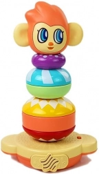 Slatki majmunčić pretvara učenje u zabavu! Ova interaktivna slagalica piramida sa zvukovima pomaže djeci od 6 mjeseci razvijati finu motoriku, koordinaciju ruka-oko i prepoznavanje boja i oblika. Pri stavljanju prstenova igračka izgovara brojeve na engleskom, a nakon dovršene gradnje nagrađuje dijete pljeskom i radosnim uzvikom.