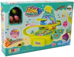 Set uključuje dupine, pačiće i ribice, dva akvarija, štapove, dijelove tobogana i naljepnice – sve za kreativnu i dugotrajnu zabavu.