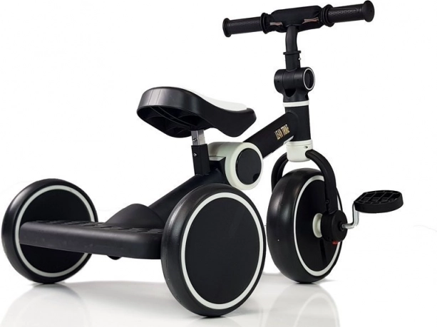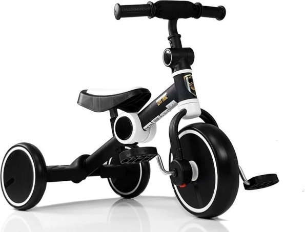 Crno-bijeli dječji tricikl marke LAMBOR predstavlja savršenu kombinaciju funkcionalnosti i dizajna za male avanturiste. Konstrukcija tricikla osigurava visoku stabilnost zahvaljujući trima čvrstim kotačima i udobnom sjedalu, koje je moguće podesiti na dvije različite visine.