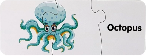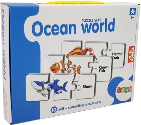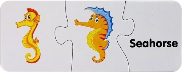 Ovaj set edukativnih puzzli iz svijeta oceana spaja zabavu i učenje. Zahvaljujući slikama i engleskim nazivima poput Shark, Dolphin ili Octopus, djeca prirodno proširuju vokabular i uče povezivati riječi sa slikama. Samokontrolni oblici dijelova sugeriraju točna rješenja i jačaju samopouzdanje tijekom igre.