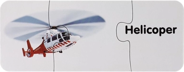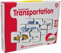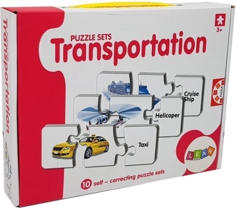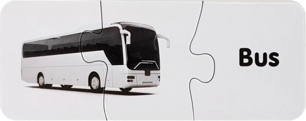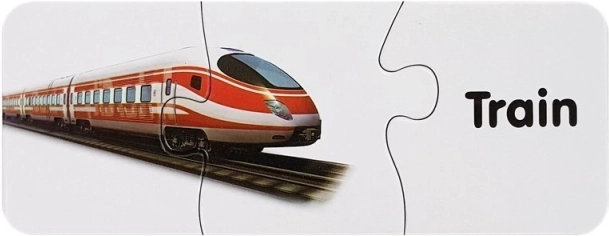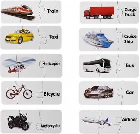 Ovaj set edukativnih puzzli spaja učenje i zabavu. Svaki par sadrži sliku prijevoznog sredstva i odgovarajuću riječ na engleskom – dijete tako prirodno proširuje rječnik i vježba vizualno pamćenje tijekom slaganja. Samokontrolni oblik dijelova sugerira točno rješenje, pa se djeca mogu učiti samostalno i s veseljem.